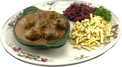 Delicious homemade venison meatballs simmered in a cream sauce served with a choice of two homemade sides